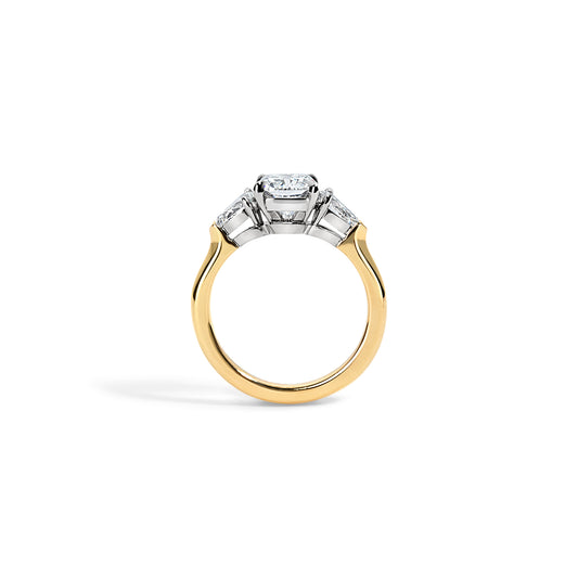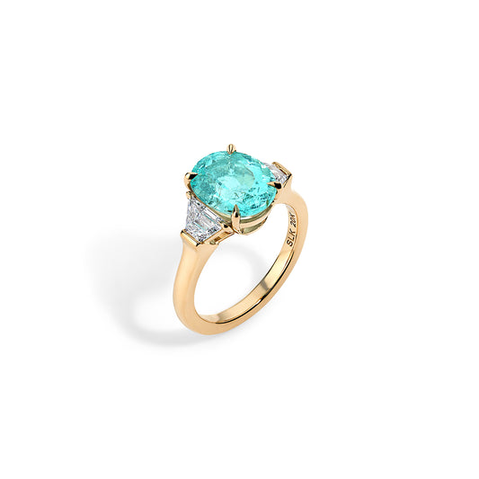 Paraiba Tourmaline & Trapezoid Diamond Three Stone Ring