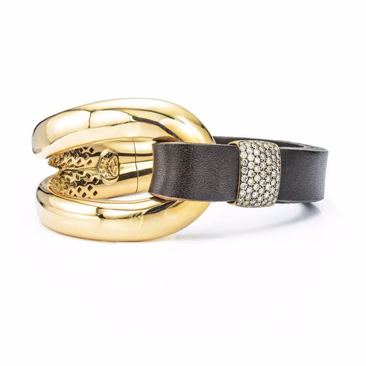 18K Gold, Brown Leather & Diamond Pave Cuff Bracelet
