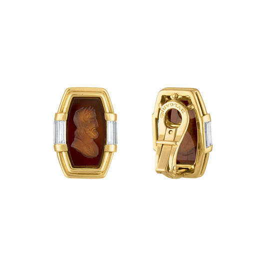 Bulgari Carved Carnelian Intaglio and Diamond Earrings