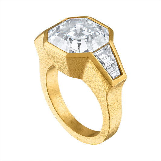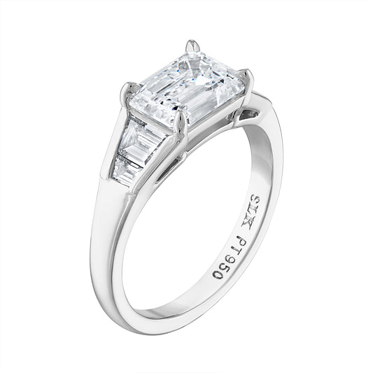 Emerald Cut & Tapered Baguette Diamond Three Stone Ring